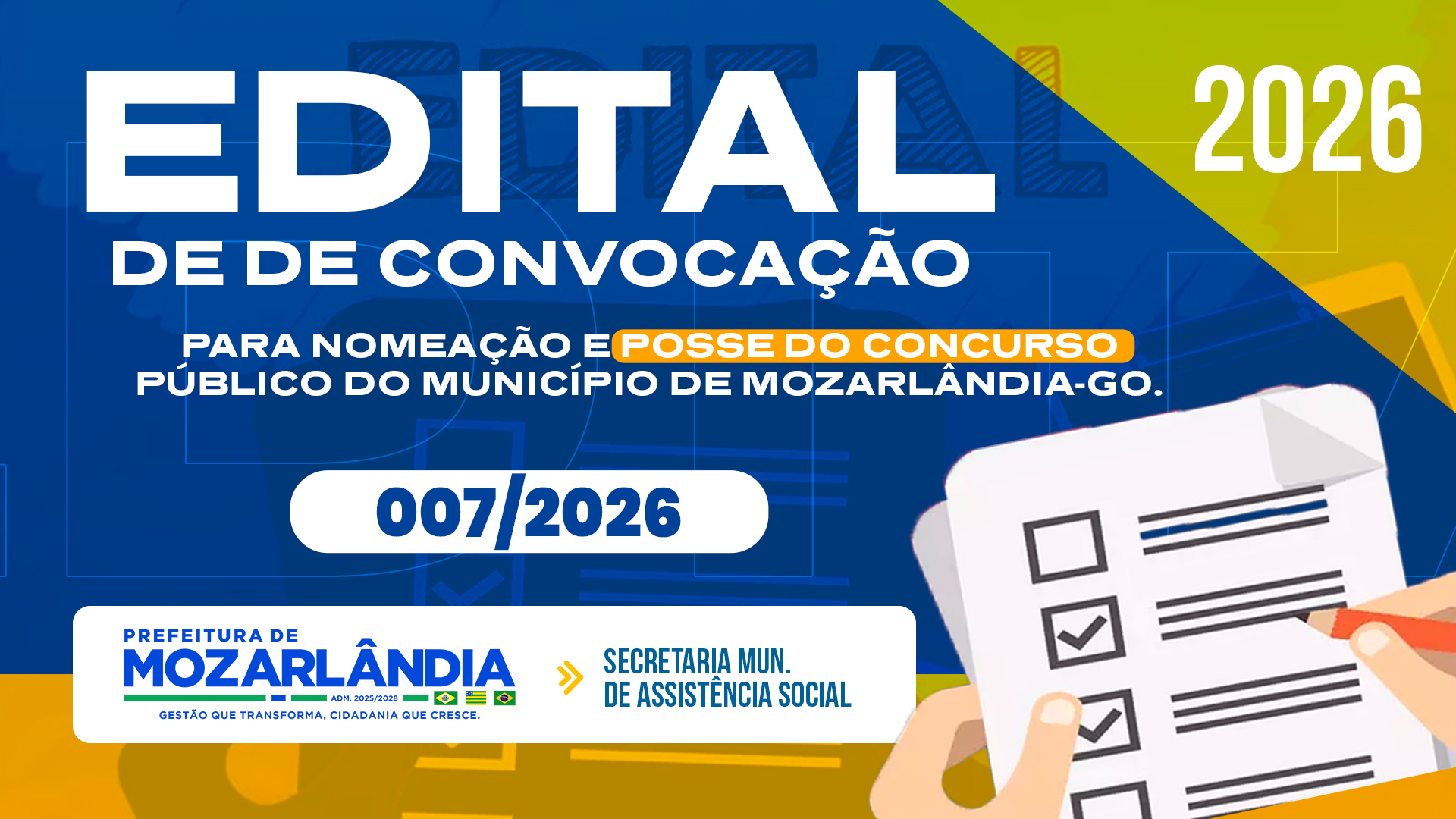 EDITAL DE CONVOCAÇÃO Nº 007/2026 PARA NOMEAÇÃO E POSSE DO CONCURSO PÚBLICO DO MUNICÍPIO DE…